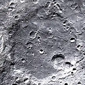 The south-eastern part of the crater is home to two notable craters, designated Bailly A and Bailly B. These craters overlap, and Bailly A lies across the rim of Bailly's mountainous wall. Selenographer Giovanni Battista Riccioli named Bailly B, Bartolus for fellow Ferrarese Jesuit Daniello Bartoli (1608-1685) in his Almagestum novum (1651).[3] The name was not recognized by the IAU.