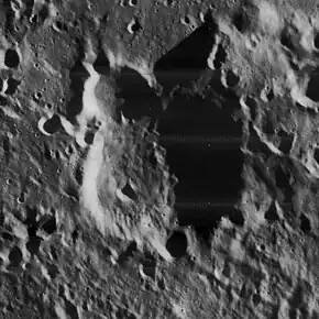 This crater lies within the Mendel-Rydberg Basin, a 630 km wide impact basin of Nectarian age.