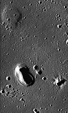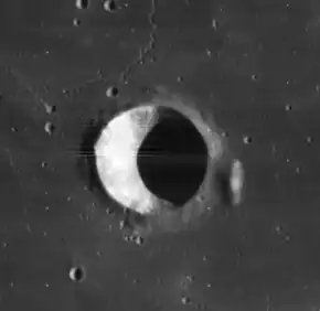 Brayley is a lunar impact crater located in the southwest part of the Mare Imbrium. It was named after British geographer Edward W. Brayley in 1935.[2] It has a circular rim and a low rise in the center. There are no notable craters overlapping the rim or interior. The sinuous rille Rima Brayley passes to the north of Brayley.