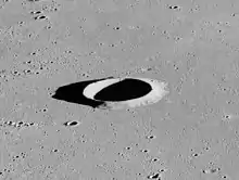 Carlini is a small lunar impact crater located in the Mare Imbrium. It was named after Italian astronomer Francesco Carlini.[1] The crater is bowl-shaped with a small central floor. It has a higher albedo than the surrounding mare, making it prominent due to its isolated location. To the south is a wrinkle ridge named Dorsum Zirkel, and farther south lies the peak Mons La Hire.