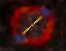 Mundell has played a leading role in the understand Gamma Ray Bursts, developing robotic telescopes that can capture the extremely fast jets.[9] In 2011 she won a Royal Society Wolfson Merit Award for her research on "Black Hole-Driven Explosions and the Dynamic Universe".[4] In 2012 whilst at Liverpool, Mundell co-designed and built RINGO2, a telescope to measure the polarisation of optical light produced after a gamma ray burst.[10] The telescope was designed to react quickly to notifications from NASA's Swift Satellite.[11] She has described the gamma-ray bursts as "the most extreme particle accelerators in the universe", which offer opportunities for testing "laws of physics".[12] In 2014, her team won a Vice Chancellor's medal for Research Scholarship.[13]