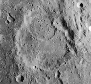 Catharina is an ancient lunar impact crater located in the southern highlands. It was named after Saint Catherine of Alexandria.[1] It lies in a rugged stretch of land between the Rupes Altai scarp to the west and Mare Nectaris in the east. To the west-northwest is the crater Tacitus, and the lava-flooded Beaumont lies to the east along the shore of Mare Nectaris. To the south-southeast is Polybius.