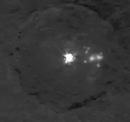 - Ruesch, O.; Platz, T.; Schenk, P.; McFadden, L. A.; Castillo-Rogez, J. C.; Quick, L. C.; Byrne, S.; Preusker, F.; OBrien, D. P.; Schmedemann, N.; Williams, D. A.; Li, J.- Y.; Bland, M. T.; Hiesinger, H.; Kneissl, T.; Neesemann, A.; Schaefer, M.; Pasckert, J. H.; Schmidt, B. E.; Buczkowski, D. L.; Sykes, M. V.; Nathues, A.; Roatsch, T.; Hoffmann, M.; Raymond, C. A.; Russell, C. T. (2 September 2016). "Cryovolcanism on Ceres". Science. 353 (6303): aaf4286. Bibcode:2016Sci...353.4286R. doi:10.1126/science.aaf4286. PMID 27701087.