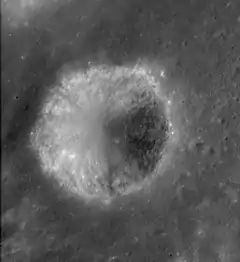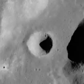In the Taurus–Littrow valley about 20 kilometers to the east is the landing site of the Apollo 17 expedition.