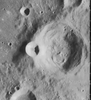 Cichus is a lunar impact crater that lies in the southwestern part of the Moon, at the eastern edge of Palus Epidemiarum. Just to the northeast and nearly contacting the rim is the lava-flooded crater remnant Weiss. The crater is named after Italian astronomer Cecco d'Ascoli.[1]
