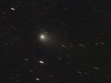 The comet was recovered on 24 August 2023 by Alan Hale with the Las Cumbres Observatory at Siding Spring, and then additional pre-recovery images from August 13 were located. The comet then had an estimated apparent magntitude of about 22.[7][1] On 16 November 2023 the comet came to opposition 139 degrees from the Sun. On 14 January 2024 the comet had an estimated magnitude of 15.3 was reported to have a strongly condensed coma measuring 0.9 arcminutes across and a faint tail one arcminute. By 10 March 2024 the comet had brightened to a magnitude of 11.4 and the coma was 4 arcminutes across. The comet was observed visually on April 12 to have a magnitude of 9.2, being a magnitude brighter than the ephimeres.[9] It will come to perihelion on June 30, 2024,[3] when it will be 1.18 AU from the Sun and 1.94 AU from Earth.[3] It is expected to brighten to about apparent magnitude 7−8.[2]