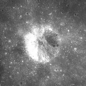The Apollo 14 astronauts Alan Shepard and Edgar Mitchell landed the Lunar Module (LM) Antares southwest of Cone crater on February 5, 1971. During the descent, Cone crater was a major landmark. Sampling ejecta from Cone was a primary scientific goal of the mission, as Cone would have penetrated the lunar regolith (soil) and brought some of the Fra Mauro Formation to the surface. The Fra Mauro Formation is interpreted as ejecta from the Imbrium impact event - an important time-stratigraphic marker in lunar history. The astronauts attempted to reach Cone on their second EVA, and came very close to it and sampled the ejecta. But due to confusing topography they never reached the rim of the crater.[2]