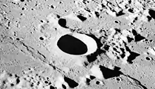 Darney is a small lunar impact crater that is located on the region of the Moon where the Mare Nubium joins the Oceanus Procellarum. It was named after French astronomer Maurice Darney.[1] To the south is the lava-flooded crater Lubiniezky. The southern rim of Darney is attached to a series of low ridges that extend to the southwest.