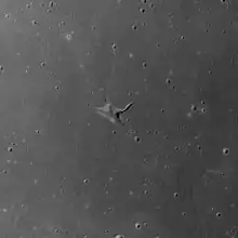 View of Aratus CA and surroundings from Apollo 15. North of the crater is the wrinkle ridge known as Dorsum Owen.