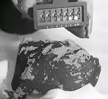 EETA 79001 was discovered at the Elephant Moraine, near Reckling Peak, Victoria Land, Antarctica. It was especially significant due to the fact that it had glass inclusions that were found to contain rare nitrogen isotopic compositions.[4] These same compositions were measured in the Martian atmosphere by the Viking spacecraft in 1976. This match was some of the first crucial evidence to positively identify the EETA 79001 meteorite, and others of its class, to be of Martian origin.[4] EETA 79001 was considered to be proven of Martian origin, after much debate, in 1985 by R.O. Pepin by comparing and expanding findings of the Viking and further isotopic analysis of EETA 79001.[3]