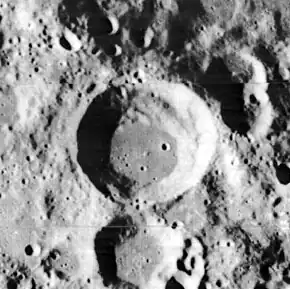 Engelʹgardt, or Engelhardt, is a lunar impact crater on the far side of the Moon, located to the north of the huge walled plain Korolev. The satellite crater Engelʹgardt B is attached to the north rim of this crater, and is actually a much larger formation with a diameter of 163 km. To the west-northwest is the crater Lebedinskiy.