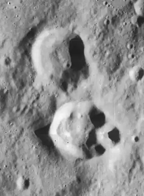 ![]() Lunar Orbiter 4 image, with Epimenides at top and Epimenides S at bottom | |