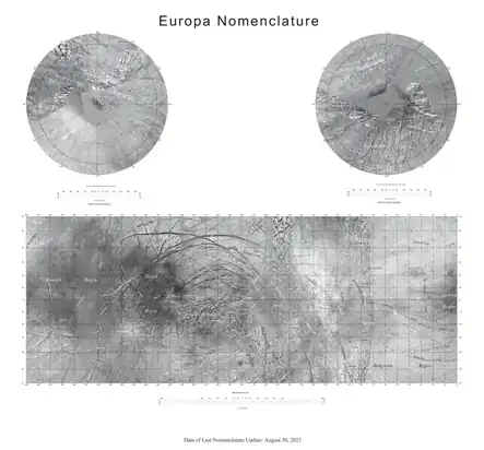 - Europa nomenclature and Europa map with feature names from the USGS planetary nomenclature page