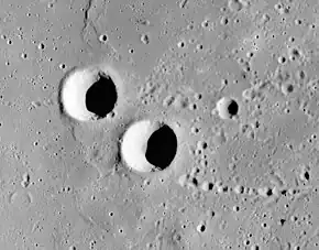 Apollo 15 Mapping Camera image with Feuillée at left and Beer at right