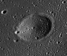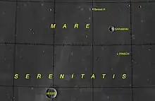 Finsch is a relatively small lunar impact crater in the mid-part of Mare Serenitatis that has been almost completely (other than the crest of the rim) covered by the mare, forming a ghost crater in the lava plain. It was named after German zoologist Otto Finsch.[1] It is located to the south-southeast of the crater Sarabhai and northeast of Bessel.