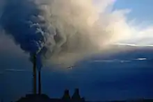 Humans play a key role in the biosphere, with the large human population dominating many of Earth's ecosystems.[3][18] This has resulted in a widespread, ongoing mass extinction of other species during the present geological epoch, now known as the Holocene extinction. The large-scale loss of species caused by human influence since the 1950s has been called a biotic crisis, with an estimated 10% of the total species lost as of 2007.[6] At current rates, about 30% of species are at risk of extinction in the next hundred years.[19] The Holocene extinction event is the result of habitat destruction, the widespread distribution of invasive species, poaching, and climate change.[20][21][22] In the present day, human activity has had a significant impact on the surface of the planet. More than a third of the land surface has been modified by human actions, and humans use about 20% of global primary production.[4] The concentration of carbon dioxide in the atmosphere has increased by close to 50% since the start of the Industrial Revolution.[3][23]
