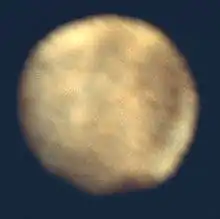 In 1972, a team of Indian, British and American astronomers working in Java, Indonesia and Kavalur, India claimed that they had detected a thin atmosphere during an occultation, when it and Jupiter passed in front of a star.[80] They estimated that the surface pressure was around 0.1 Pa (1 microbar).[80] However, in 1979, Voyager 1 observed an occultation of the star κ Centauri during its flyby of Jupiter, with differing results.[81] The occultation measurements were conducted in the far-ultraviolet spectrum at wavelengths shorter than 200 nm, which were much more sensitive to the presence of gases than the 1972 measurements made in the visible spectrum. No atmosphere was revealed by the Voyager data. The upper limit on the surface particle number density was found to be 1.5×109 cm−3, which corresponds to a surface pressure of less than 2.5 μPa (25 picobar).[81] The latter value is almost five orders of magnitude less than the 1972 estimate.[81]