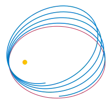 In general relativity, the apsides of any orbit (the point of the orbiting body's closest approach to the system's center of mass) will precess; the orbit is not an ellipse, but akin to an ellipse that rotates on its focus, resulting in a rose curve-like shape (see image). Einstein first derived this result by using an approximate metric representing the Newtonian limit and treating the orbiting body as a test particle. For him, the fact that his theory gave a straightforward explanation of Mercury's anomalous perihelion shift, discovered earlier by Urbain Le Verrier in 1859, was important evidence that he had at last identified the correct form of the gravitational field equations.[89]