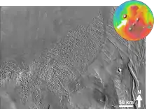 Gigas Sulci is an area of subparallel furrows and ridges in the Tharsis quadrangle of Mars, located at 10°N 127.8°W. It is 398 km across and was named after a classical albedo feature name.[1] The term "sulci" is applied to subparallel furrows and ridges.[2]