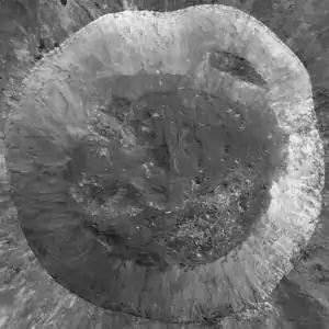 Giordano Bruno is a 22-kilometre (14 mi) lunar impact crater on the far side of the Moon, just beyond the northeastern limb. It lies in an area that can be viewed during a favorable libration, although the area is viewed from the side and not much detail can be seen. It lies between the craters Harkhebi to the northwest and Szilard to the southeast.[1]