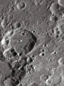 Media related to Goodacre (crater) at Wikimedia Commons- Wood, Chuck (July 15, 2007). "An Author Where He Belongs". Lunar Photo of the Day. Archived from the original on September 27, 2007. Retrieved 2007-07-16.