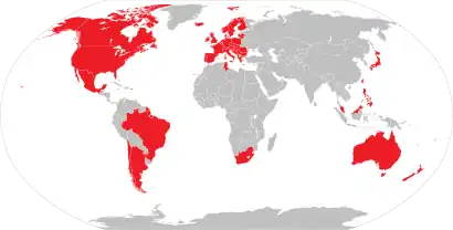 Google Earth has been released on macOS, Linux, iOS, and Android. The Linux version began with the version 4 beta of Google Earth, as a native port using the Qt toolkit. The Free Software Foundation considers the development of a free compatible client for Google Earth to be a High Priority Free Software Project.[59] Google Earth was released for Android on February 22, 2010,[60] and on iOS on October 27, 2008.[61][62] The mobile versions of Google Earth can make use of multi-touch interfaces to move on the globe, zoom or rotate the view, and allow to select the current location. An automotive version of Google Earth was made available in the 2010 Audi A8.[63] On February 27, 2020, Google opened up its web-based version of Earth to browsers like Firefox, Edge, and Opera.[64][65]