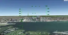 Google Earth shows 3D building models in some cities, including photorealistic 3D imagery made using photogrammetry.[24] The first 3D buildings in Google Earth were created using 3D modeling applications such as SketchUp and, beginning in 2009, Building Maker,[25] and were uploaded to Google Earth via the 3D Warehouse. In June 2012, Google announced that it would be replacing user-generated 3D buildings with an auto-generated 3D mesh.[26] This would be phased in, starting with select larger cities, with the notable exception of cities such as London and Toronto which required more time to process detailed imagery of their vast number of buildings. The reason given is to have greater uniformity in 3D buildings and to compete with Nokia Here and Apple Maps, which were already using this technology. The coverage began that year in 21 cities in four countries.[27] By early 2016, 3D imagery had been expanded to hundreds of cities in over 40 countries, including every U.S. state and encompassing every continent except Antarctica.