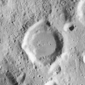 Haidinger is a lunar impact crater that is located in the southwestern part of the Moon. It was named after Austrian geologist Wilhelm von Haidinger.[1] Just to the southwest of the crater is the small lunar mare named Lacus Timoris. Haidinger lies northwest of the crater Wilhelm and east of the irregular formation Hainzel.