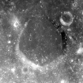 Helmert is a lunar impact crater at the southern edge of the Mare Smythii. It lies near the eastern limb of the Moon, and from the Earth it is seen nearly from the side. The visibility of this feature can be strongly affected by libration of the Moon in its orbit.