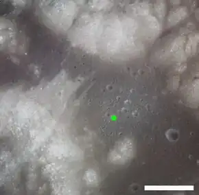![]() Location of Hess-Apollo crater in Taurus–Littrow valley. South Massif is at lower left, North Massif is at top center, and Sculptured Hills are at upper right. Scale bar is 5 km | |