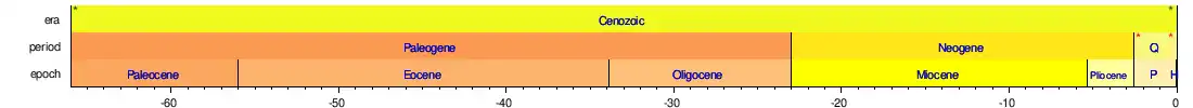 - "The Cenozoic Era". University of California Museum of Paleontology. June 2011. Retrieved 2016-01-10.