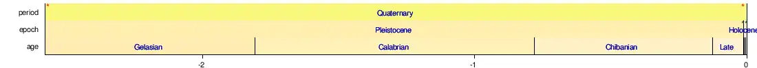 Horizontal scale is Millions of years (above timelines) / Thousands of years (below timeline)