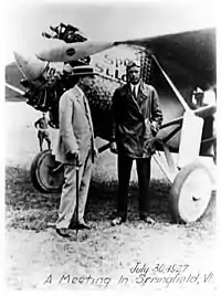After his trans-Atlantic flight, Charles Lindbergh toured the United States in the Spirit of St. Louis to promote aviation. He landed in Springfield on July 26, 1927 in his visit to Vermont and spoke at a large gathering at the airport. Hartness hosted Lindbergh at his home.[9]