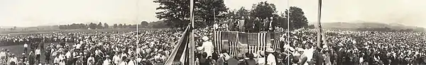 A Republican, in 1920, Hartness ran for the party's gubernatorial nomination. An advocate of passing the Nineteenth Amendment to the United States Constitution, he decided to take advantage of the expanded electorate when women were permitted to vote, as well as the primary elections that had replaced state party conventions, to bypass the party's Mountain Rule and campaign directly for the nomination.[28] In the primary, Hartness obtained 39 percent of the vote, defeating three well-established candidates.[28] In the general election, Hartness campaigned on the issue of enticing Vermonters to stay rather than seek employment elsewhere.[3] He easily bested Democrat Fred C. Martin, 78 percent to 21.8.[9]