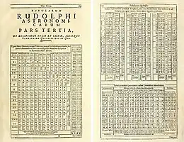 Two pages from Kepler's Rudolphine Tables showing eclipses of the Sun and Moon