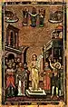 The main source of information for the life of John of Damascus is a work attributed to one John of Jerusalem, identified therein as the Patriarch of Jerusalem.[9] This is an excerpted translation into Greek of an earlier Arabic text. The Arabic original contains a prologue not found in most other translations, and was written by an Arab monk, Michael, who explained that he decided to write his biography in 1084 because none was available in his day. However, the main Arabic text seems to have been written by an unknown earlier author sometime between the early 9th and late 10th century.[9] Written from a hagiographical point of view and prone to exaggeration and some legendary details, it is not the best historical source for his life, but is widely reproduced and considered to contain elements of some value.[10] The hagiographic novel Barlaam and Josaphat, is a work of the 10th century[11] attributed to a monk named John. It was only considerably later that the tradition arose that this was John of Damascus, but most scholars no longer accept this attribution. Instead much evidence points to Euthymius of Athos, a Georgian who died in 1028.[12]