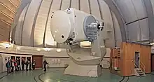 The observatory has the largest telescope located in Germany, which is also the largest Schmidt camera in the world. Made by VEB Zeiss Jena (the branch of Carl Zeiss located in Jena in what was then East Germany), this instrument is known as (2m) Alfred Jensch Telescope: though its mirror is 2 metres in diameter, the telescope's aperture is 1.34 m.[2]