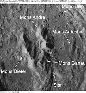 | Mons | Latitude | Longitude | Approximate Altitude[4] |