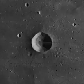Kirch is a small lunar impact crater in the eastern part of the Mare Imbrium, a large lunar mare in the northwest quadrant of the Moon. It was named after German astronomer Gottfried Kirch.[1] This is a relatively solitary formation with the nearest comparable crater being Piazzi Smyth to the northeast. Notable features in the vicinity are the Montes Spitzbergen mountains to the south and the solitary peak Mons Piton to the east-northeast. Kirch is circular and bowl-shaped, with a dark interior having the same albedo as the surrounding terrain.
