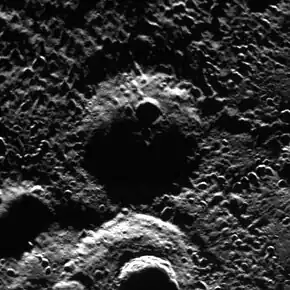 L'Engle has a crater floor that is in permanent shadow.[2] So do nearby craters Chao Meng-Fu (at the south pole), Lovecraft, and Hurley.