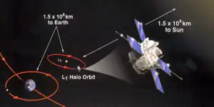 Sun–Earth L1 is suited for making observations of the Sun–Earth system. Objects here are never shadowed by Earth or the Moon and, if observing Earth, always view the sunlit hemisphere. The first mission of this type was the 1978 International Sun Earth Explorer 3 (ISEE-3) mission used as an interplanetary early warning storm monitor for solar disturbances.[25] Since June 2015, DSCOVR has orbited the L1 point. Conversely, it is also useful for space-based solar telescopes, because it provides an uninterrupted view of the Sun and any space weather (including the solar wind and coronal mass ejections) reaches L1 up to an hour before Earth. Solar and heliospheric missions currently located around L1 include the Solar and Heliospheric Observatory, Wind, Aditya-L1 Mission and the Advanced Composition Explorer. Planned missions include the Interstellar Mapping and Acceleration Probe(IMAP) and the NEO Surveyor.
