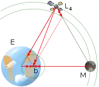 - The Earth–Moon L4 and L5 points contain concentrations of interplanetary dust, known as Kordylewski clouds.[13][14] Stability at these specific points is greatly complicated by solar gravitational influence.[15]