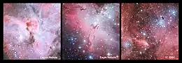 Hot and brilliant O-type main-sequence stars in star-forming regions. These are all regions of star formation that contain many hot young stars including several bright stars of spectral type O.[10]