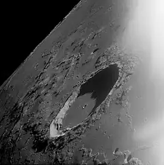The area of this crater was one of the locations proposed for an Apollo mission, but the expedition was subsequently cancelled. About 50 kilometres to the southeast was the landing site of the Luna 7 probe.