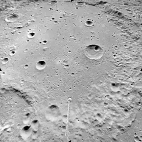 ![]() Oblique Apollo 16 image, facing west (Gamma-ray spectrometer in foreground) | |