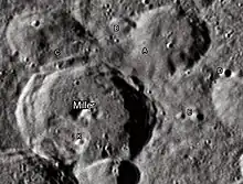 By convention these features are identified on lunar maps by placing the letter on the side of the crater midpoint that is closest to Miller.