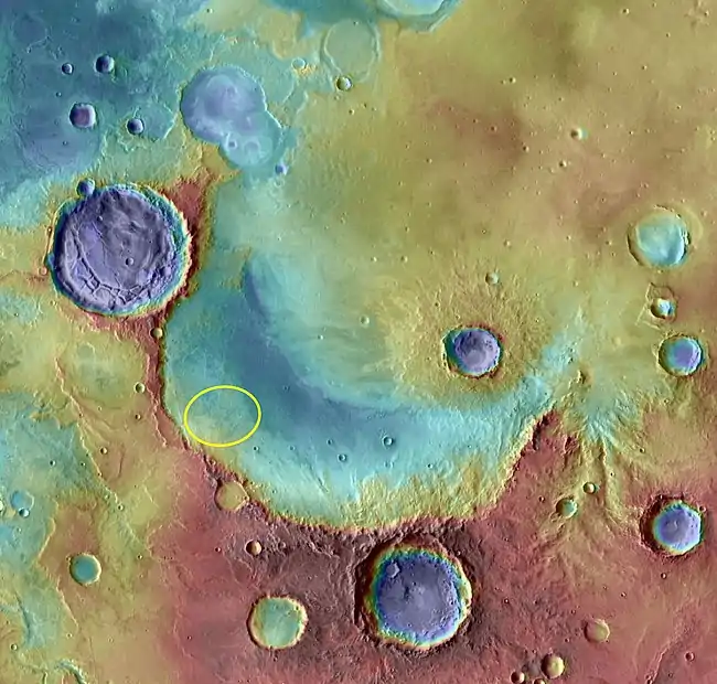 The seven finalists were:[2] Eberswalde crater, Gale crater, Holden crater, Mawrth Vallis, Miyamoto Crater, Nili Fossae Trough, Southern Meridiani (also near Miyamato)