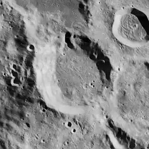 Moulton is a crater on the Moon's far side, just beyond the south-southwestern limb as seen from the Earth. The crater is attached to the southern edge of Chamberlin, and it lies at the northern terminus of the Vallis Schrödinger. There is a cleft in the shared rim between Chamberlin and Moulton.