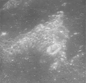 Mount Marilyn is in the upper left of this photograph from Apollo 10. North is to the left.