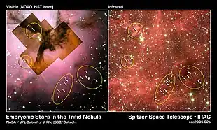 - Haisch, Karl E.; Lada, Elizabeth A.; Lada, Charles J. (2001). "Disk frequencies and lifetimes in young clusters". The Astrophysical Journal. 553 (2): L153–L156. arXiv:astro-ph/0104347. Bibcode:2001ApJ...553L.153H. doi:10.1086/320685. S2CID 16480998.